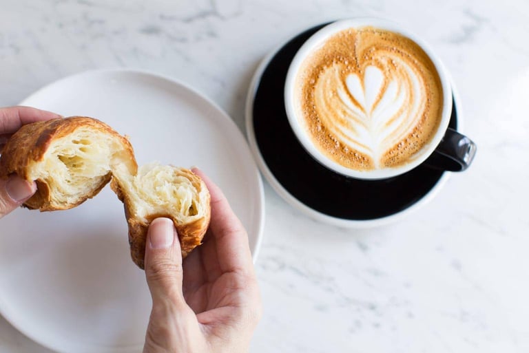 If you happen to walk in during breakfast hours, there may be a line out the door! That is how banging this place is. I only planned to go for a cup of coffee, but seeing the long line and smelling the freshly baked bread, I just couldn’t help myself! The nail in the coffin was the sampler bread they put out, one sweet and the other savory. I recommend trying their sourdough bread, it is simple yet tasty and complements the coffee extremely well.
