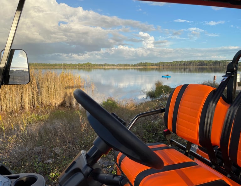 How, you may ask? Picture this: you are staying at Grayton Beach State Park, the best state park in the world, and you want to go for some food at a nearby restaurant that is fairly close but not quite within walking distance. Should you spend hours fighting for a parking spot in town? Listening to the hangry complaints of those backseat monsters? No, you shouldn’t. You should hop on a golf cart and cruise right on through!